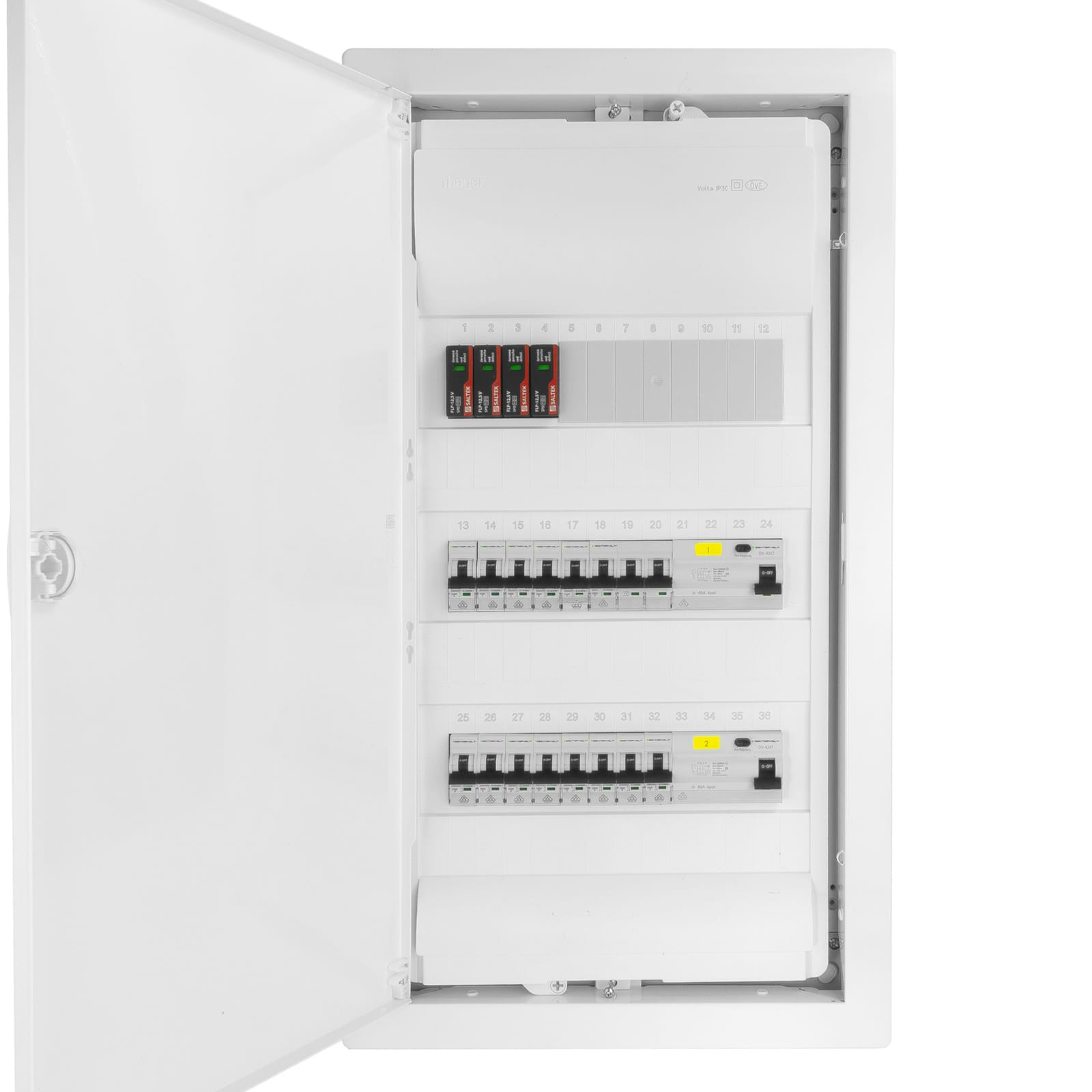 Unterputz Sicherungskasten 3-reihig 14xMCB 1xRCCB VDE mit Tür 630,50x348x98mm verdrahtet Überspannungsschutz Saltek