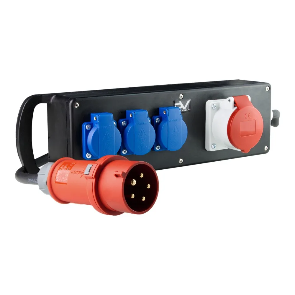 CEE Stromverteiler Vollgummi 16A/400V auf 16A/400V 3x230V Doktorvolt DV-2568-RB2025-09-08T15:16:34+02:00