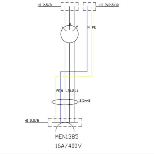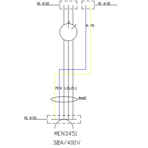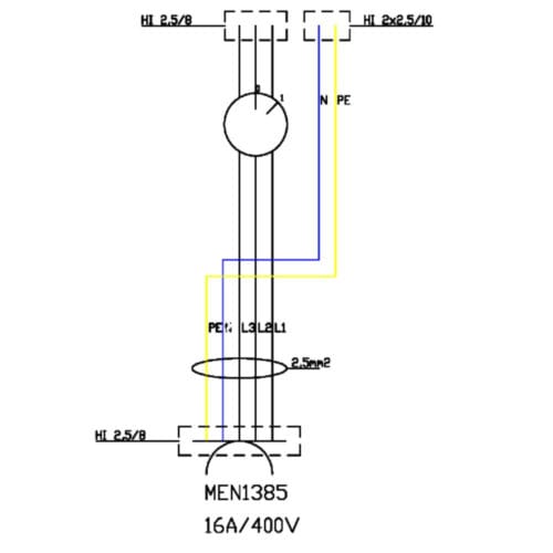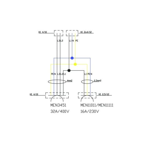 Verlängerungskabel 16A mit Sicherung C16 3P Doktorvolt DV-2520-AZ-16A