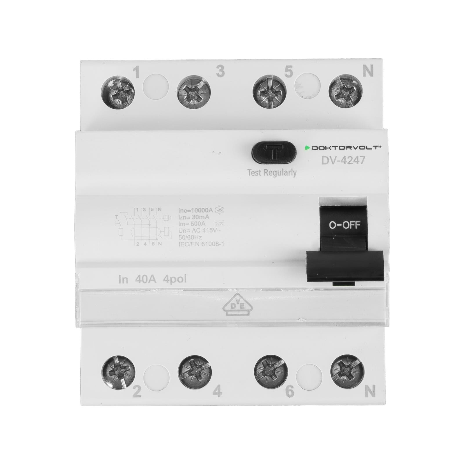Fehlerstromschutzschalter RCCB 10kA 4P 40A 30mA typ A Doktorvolt VDE FI-Schalter DV-4247