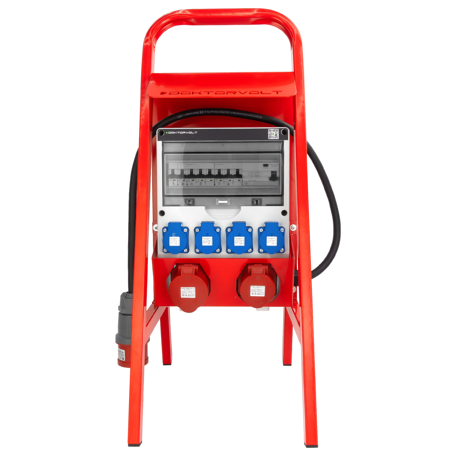 Baustromverteiler 16A 32A CEE 4x230V und Ständer mit Dach TGD-S/FI mit Stecker und Kabel Stromverteiler Wandverteiler mit VDE Sicherungen Doktorvolt DV-6074-D