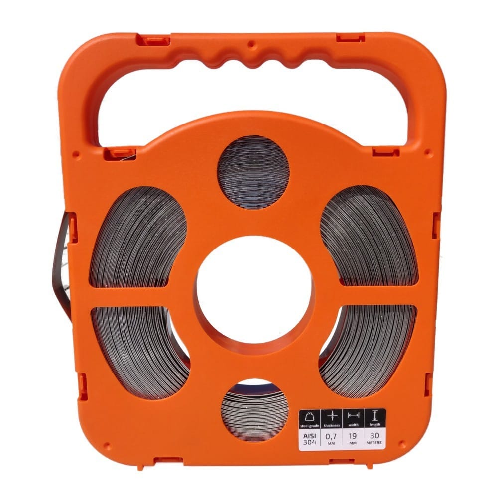 Edelstahl Band 0,7 x 19mm 30m V2A rostfrei Metall Band Blech Streifen Rolle mit Griff DV-4906-LBP 5907589334906 Preis-Zone Baustahl Baumaterial