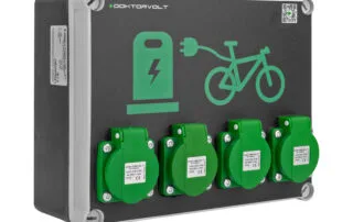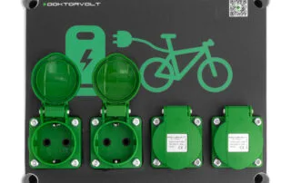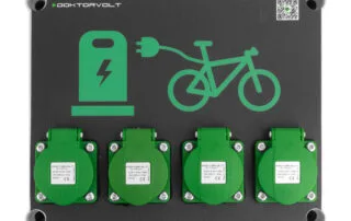 One of these solutions is the stationary e-bike charging station Doktorvolt® DV-5848, equipped with 4 Schuko 230V sockets and an IP54 protection rating.