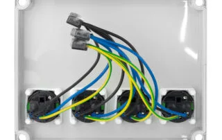 Sockets: 4× Schuko single-phase 2P+E 16A 230V, IP54 (green)