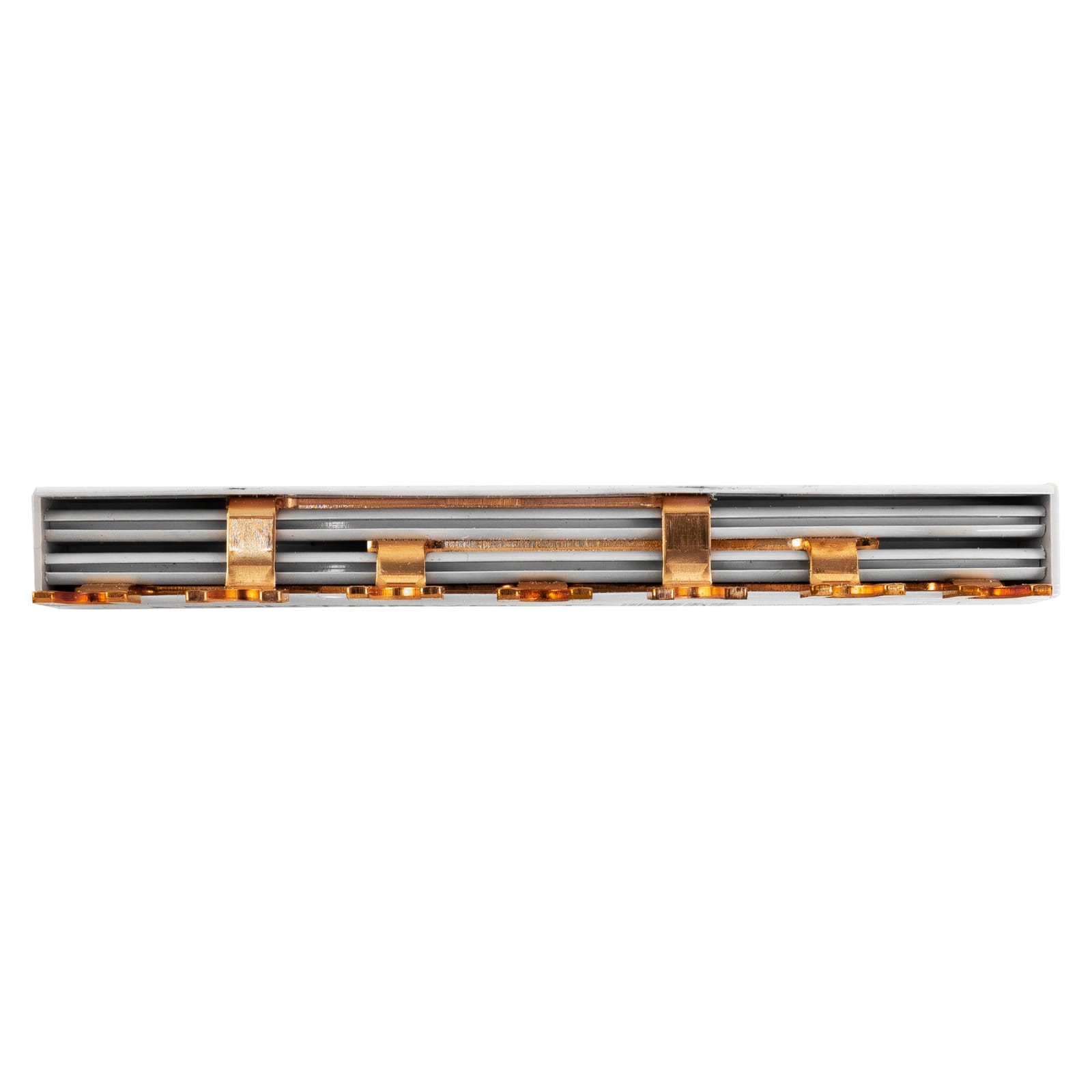 Szyna fazowa 3P z końcówką widełkową do rozdziału zasilania na trzy fazy. Model 7-polowy o przekroju 12 mm² i prądzie znamionowym 80A. Niezawodna do zastosowań w rozdzielnicach modułowych. Producent: Doktorvolt.