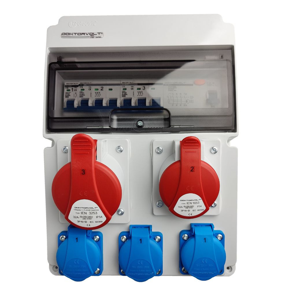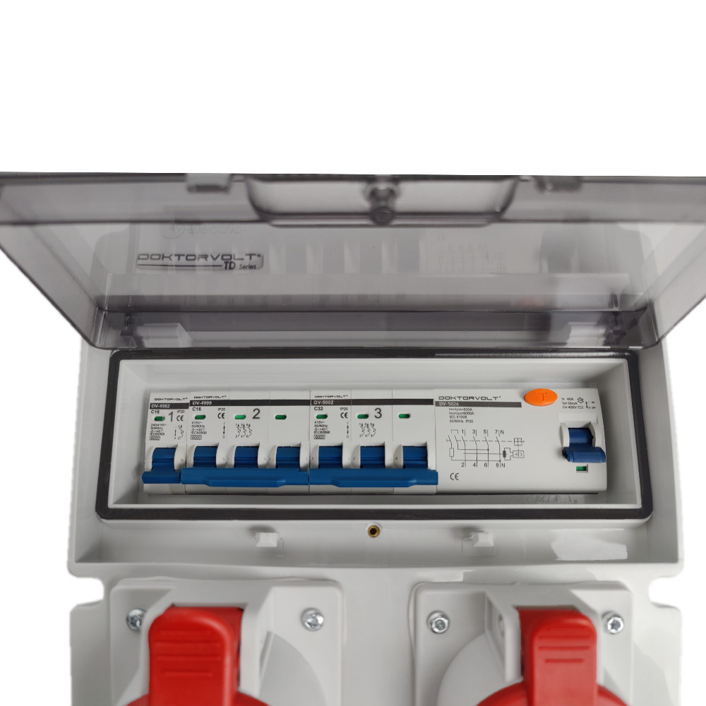 Rozdzielnica budowlana 32A 16A 3x230V zabezpieczona erbetka IP54 DOKTORVOLT JUN-S/FI DV-0294-F