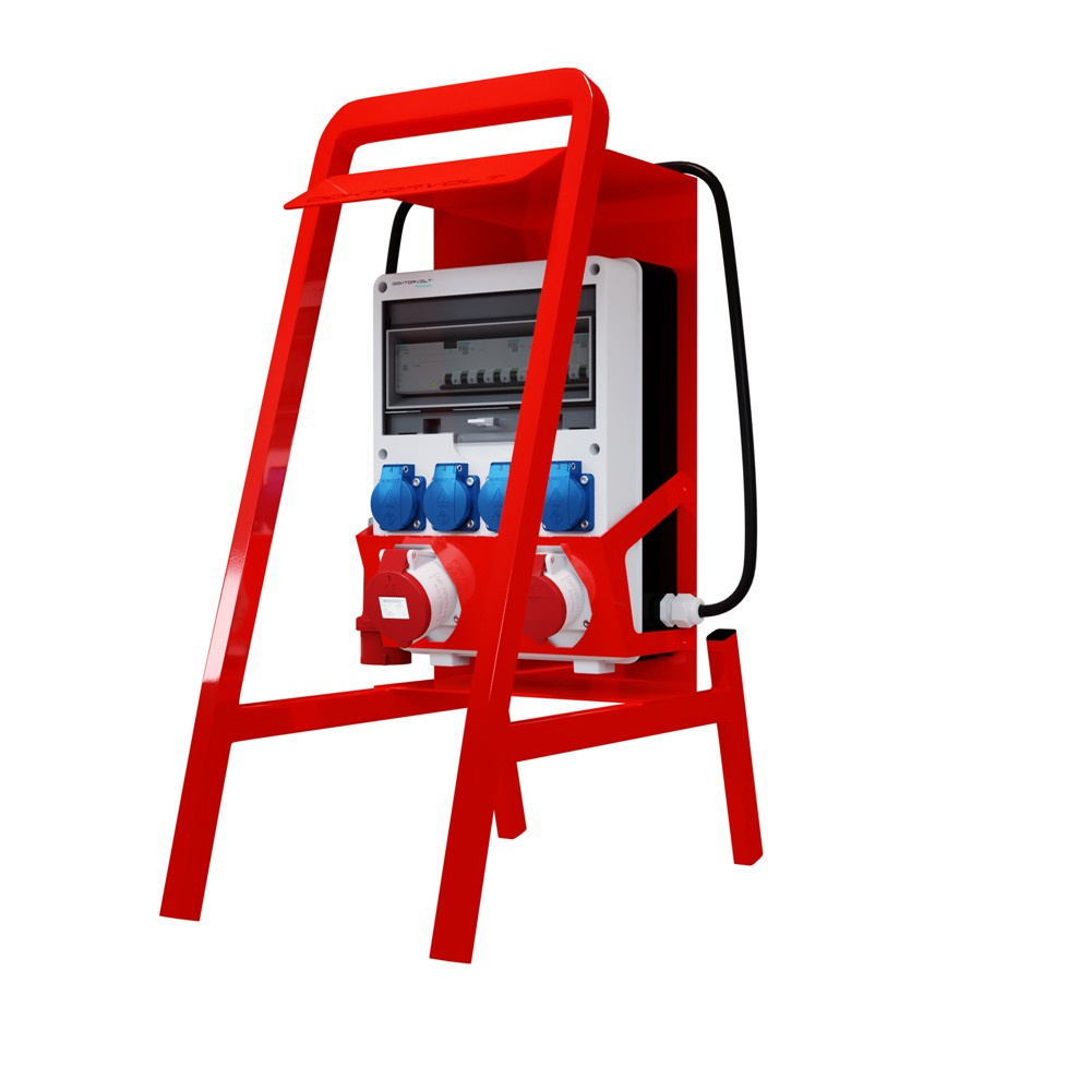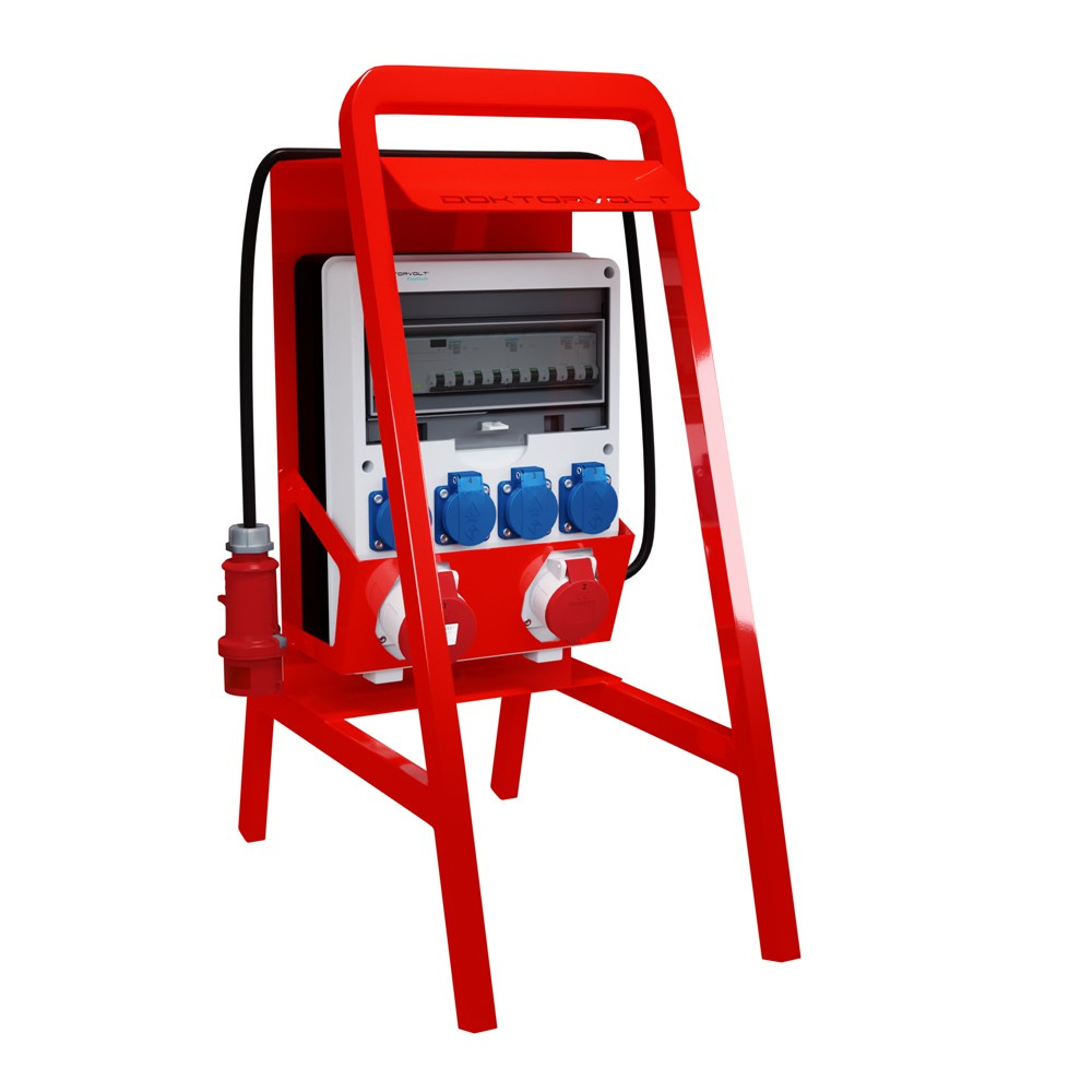 Rozdzielnica budowlana na stojaku zabezpieczenia Siemens pTD-S/FI 32A MENNEKES 16A 4x230V SET gniazda Mennekes Schuko Doktorvolt DV-6221-D