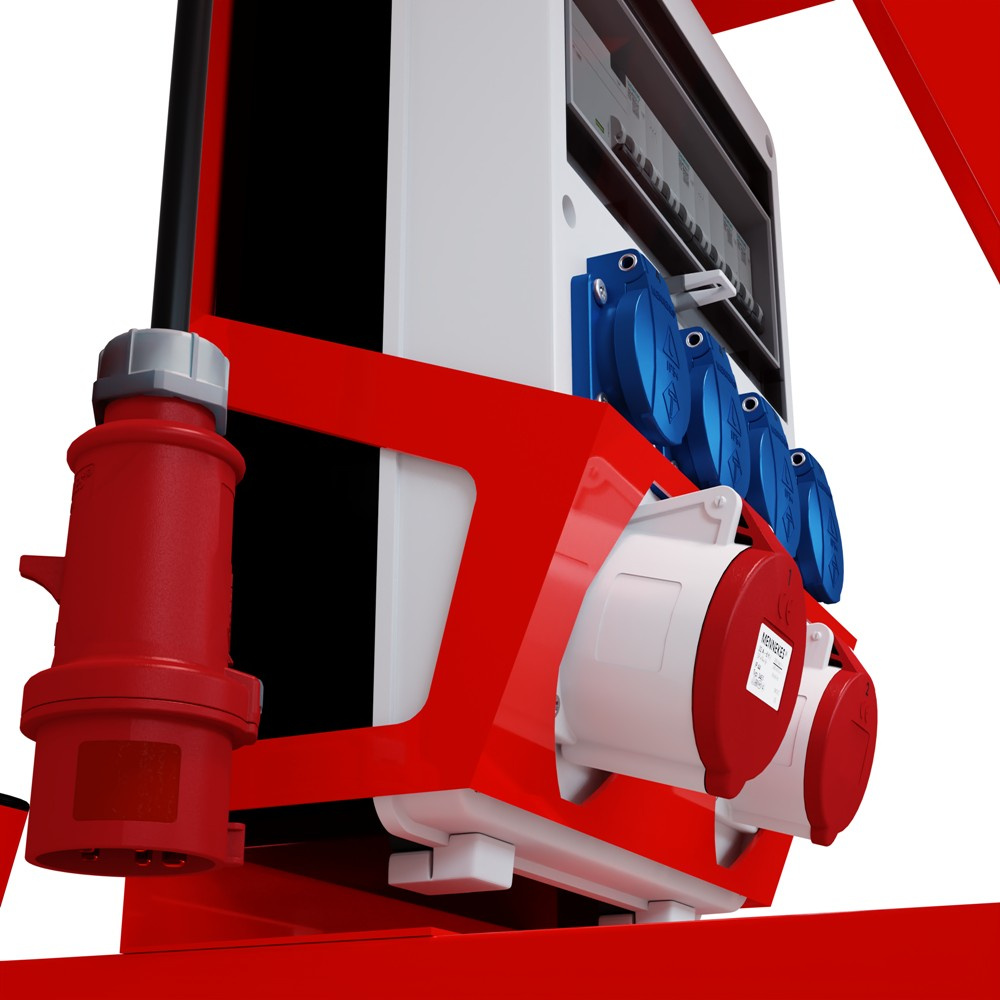 Rozdzielnica idealnie sprawdza się jako centralny punkt zasilania na placach budowy, przy pracach drogowych i w zakładach przemysłowych. Umożliwia bezpieczne zasilanie urządzeń jedno- i trójfazowych w warsztatach oraz garażach. Odporna obudowa i stabilny stojak sprawiają, że doskonale nadaje się także do wydarzeń plenerowych i prac w terenie.