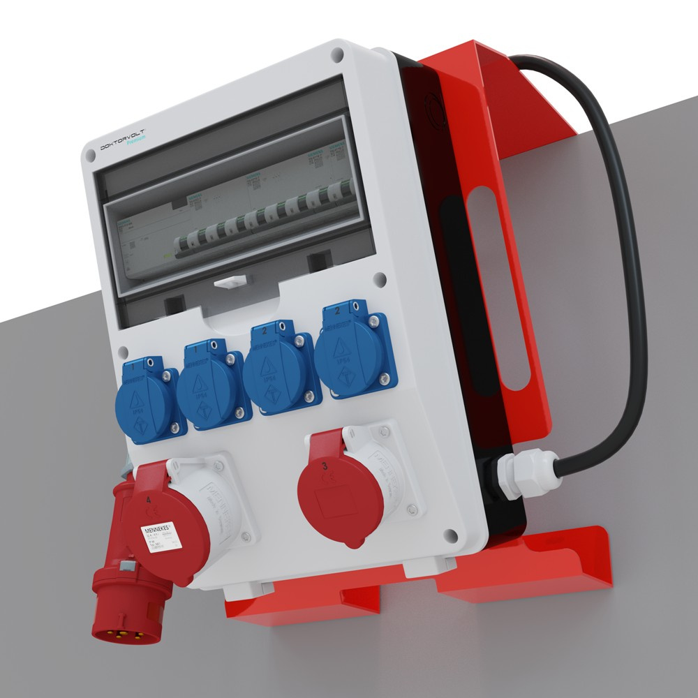 Rozdzielnica budowlana na stojaku zabezpieczenia Siemens pTD-S/FI SET przenośna z gniazdami 16A 32A CEE MENNEKES 4x230V rozdzielnia elektryczna na budowę skrzynka elektryczna z zabezpieczeniem Doktorvolt DV-6160-D
