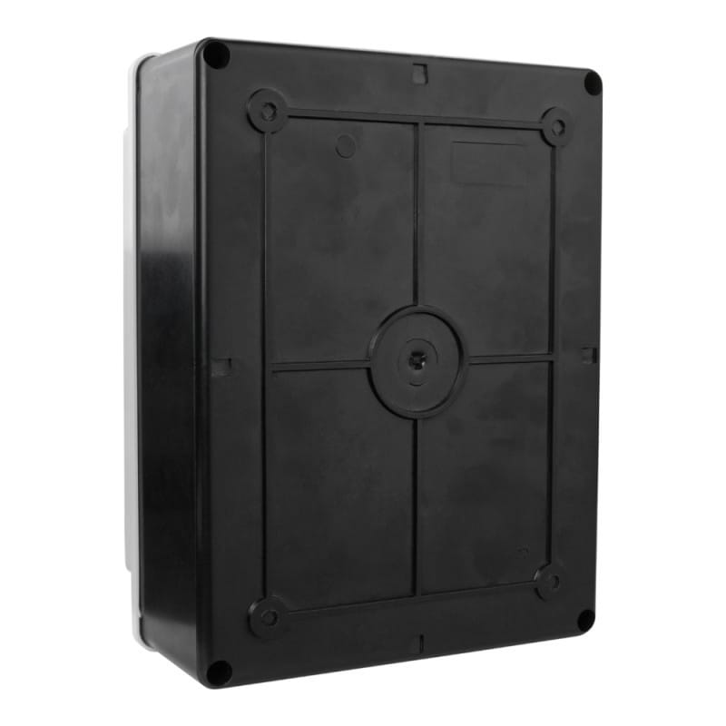 Obudowa rozdzielnicy czteromodułowej budowlanej, do montażu naściennego. Dwukolorowa, przód obudowy w kolorze szarym, tył w kolorze czarnym. Piankowa uszczelka zabezpiecza drzwi transparentne oraz płytę podstawy z ochroną w obszarze wgłębnego ukształtowania. Kategoria odporności udarowej IK09 zgodnie z EN 60670-1, EN 60670-24. Obudowa rozdzielnicy daje nam możliwość zamontowania gniazd tablicowych po wycięciu otworów. Istnieje również możliwość zamontowania aparatury takiej jak: wyłączniki nadprądowe, wyłączniki różnicoprądowe, lampki kontrolne, ograniczniki przepięć itp.