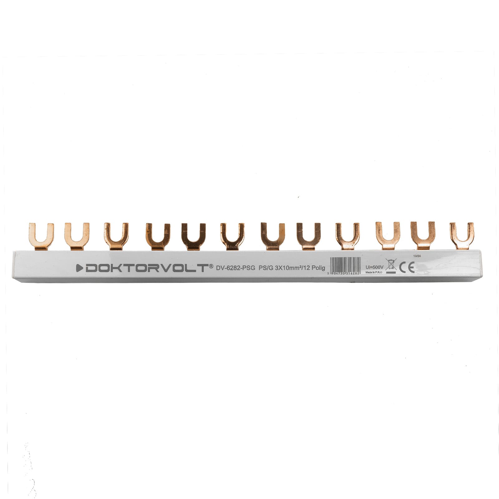 Szyna fazowa 3P z końcówką widełkową marki Doktorvolt to niezawodne rozwiązanie do rozdzielnic modułowych. Umożliwia łatwe i bezpieczne podłączenie 12 urządzeń, zapewniając równomierny rozdział zasilania do 63A przy przekroju 10 mm².