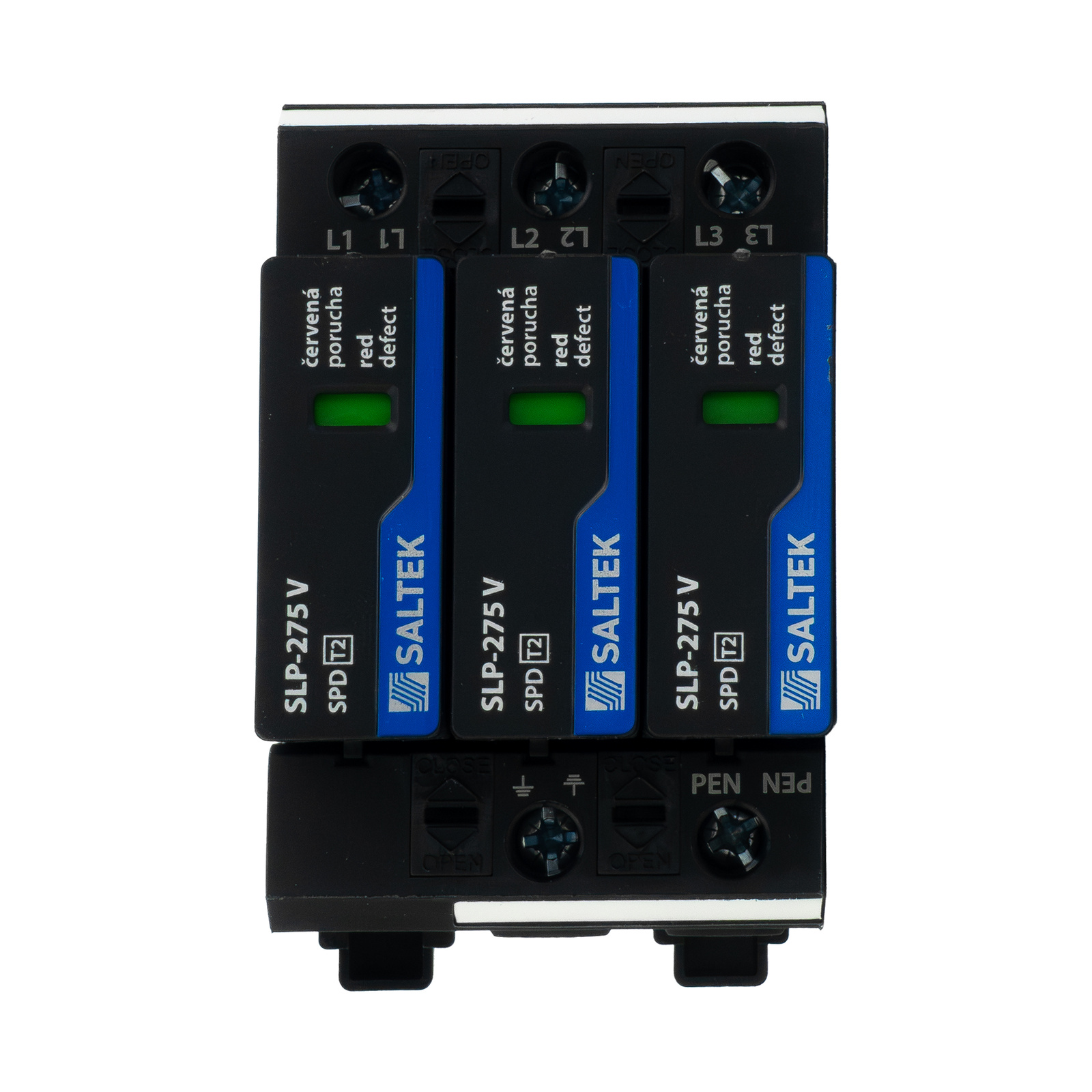 SLP-275 V/3 to trójfazowy ogranicznik przepięć typu 2, przeznaczony do systemów TN-C. Zapewnia ochronę instalacji elektrycznej i urządzeń przed przepięciami indukowanymi i łączeniowymi. Idealny do montażu w rozdzielnicach podrzędnych. Wyposażony w moduły wtykowe, blokadę oraz wizualną sygnalizację uszkodzenia.