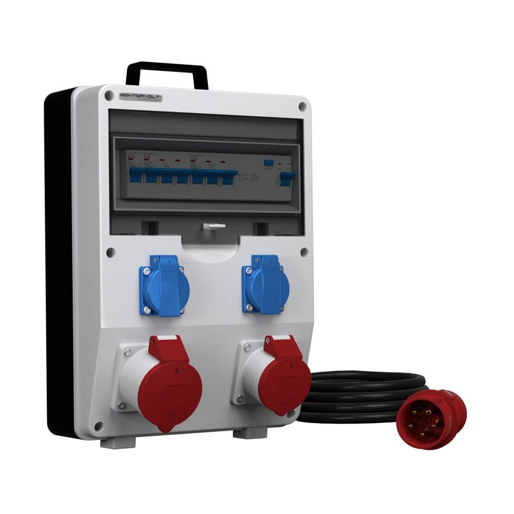 Rozdzielnica budowlana z kablem ECO-S/FI 32A 16A 2x230V Schuko Doktorvolt DV-9757-D