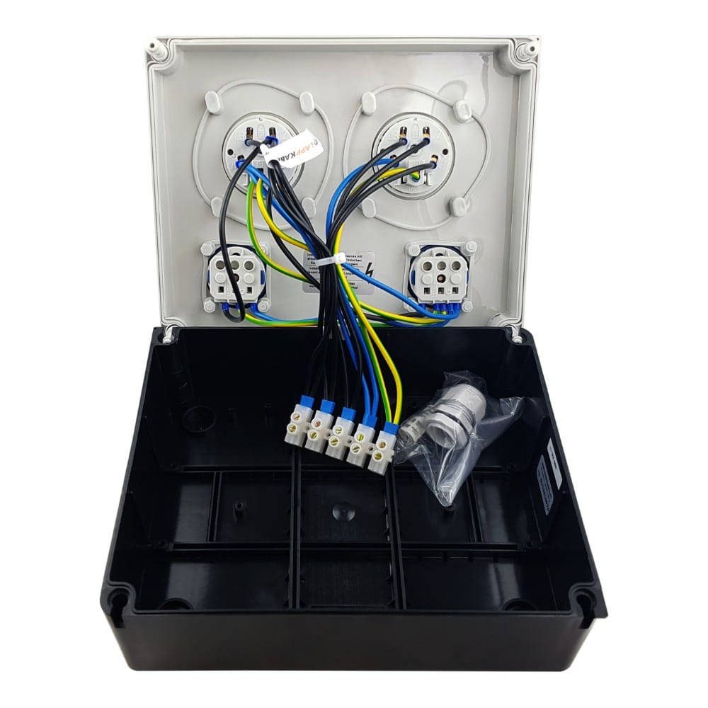 ✔️ dwa gniazda 2x 230 V 16 A o klasie szczelności IP44,