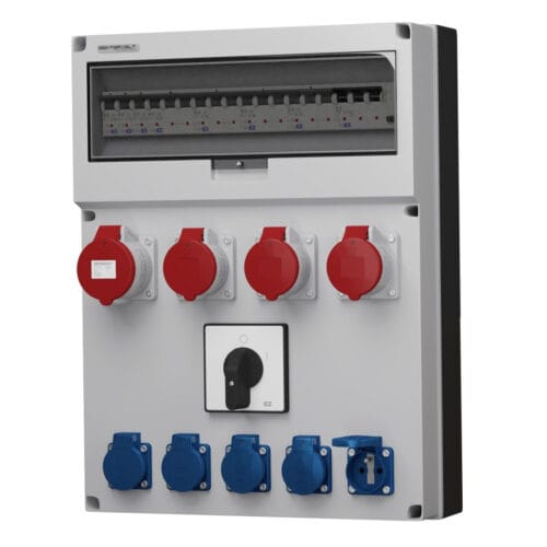 Nieuzbrojona rozdzielnica budowlana GR 32A 3x16A 5x230V z łącznikiem krzywkowym 0-1 i gniazdami Mennekes Doktorvolt®