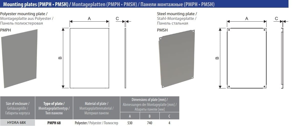 Płyta montażowa do obudów serii HYDRA 81x. Płyta montażowa została wykonana z wysokiej jakości poliestru. Wysokość płyty jest równa 755 mm, a szerokość 925 mm.