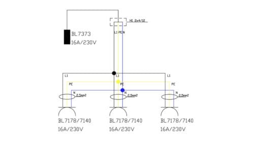 3x230V Schuko 16A/3P 2P+PE IP54 system niemiecki niebieski RAL 5015 Typ F Typ 7178 Bals |