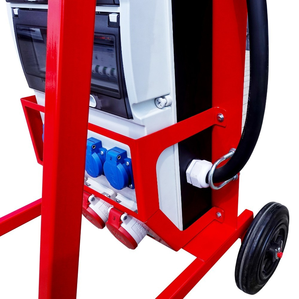 Rozdzielnica budowlana na stojaku z licznikiem zużycia energii eXT S/FI SET przenośna z gniazdami 2x16A 32A CEE MENNEKES 4x230V Schuko rozdzielnia elektryczna na budowę skrzynka elektryczna z zabezpieczeniem Doktorvolt DV-6177-D