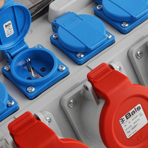 Rozdzielnica oferuje aż 8 gniazd Schuko 230V o mocy 16A, a także dwa gniazda siłowe CEE 16A oraz jedno CEE 32A 400V, wszystkie z ochroną IP44. Zabezpieczenie nadprądowe dla każdego z gniazd realizowane jest przez wyłączniki C16, a dodatkowe zabezpieczenia różnicowoprądowe zapewniają maksymalną ochronę przed przepięciami i zwarciem, co znacząco podnosi poziom bezpieczeństwa użytkowania.