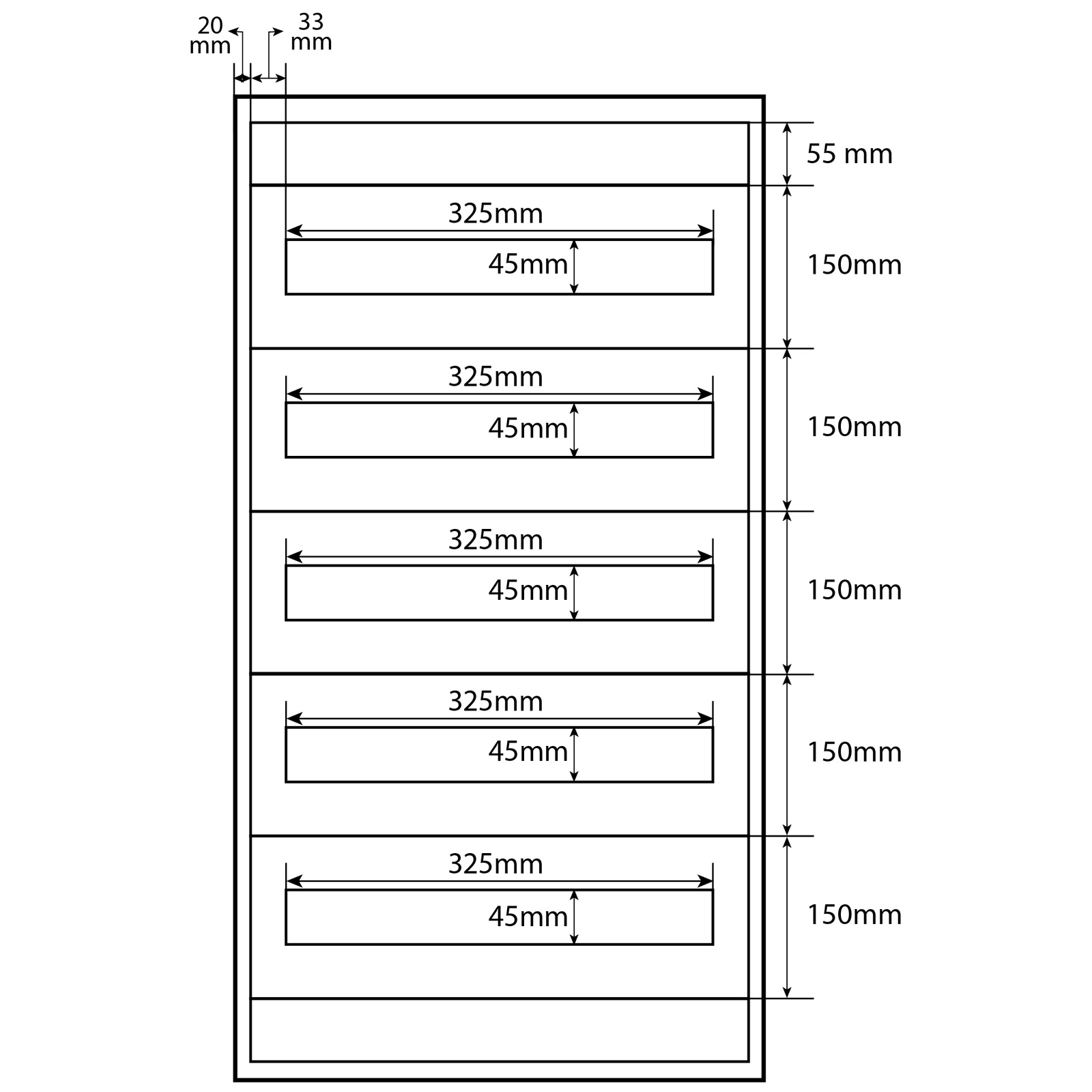 Skrzynka elektryczna składa się z 5 rzędów szyny DIN na których można zamontować 90 modułów. Możliwość montażu 18 modułów na jednej szynie. Rozdzielnica posiada również drzwi z zamkiem obrotowym które umożliwią ochronę dostępu do wewnątrz rozdzielnicy. Drzwiczki zostały zaprojektowane w sposób aby zapewnić możliwość otwierania ich zarówno w lewo jak i prawo dopasowując się do oczekiwań użytkownika. Wprowadzanie kabli możliwe zarówno z góry, jak i od dołu, w zależności od Twoich potrzeb. Dodatkowym atutem jest możliwość odkręcenia każdego elementu rozdzielnicy. Istnieje możliwość wymiany zamka w drzwiach na zamek z kluczem w celu jeszcze większego bezpieczeństwa wnętrza skrzynki. Elementy skrzynki zostały pomalowane proszkowo co daje im większą ochronę przed korozją.