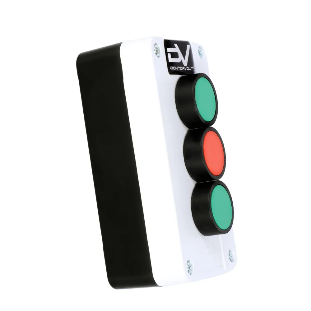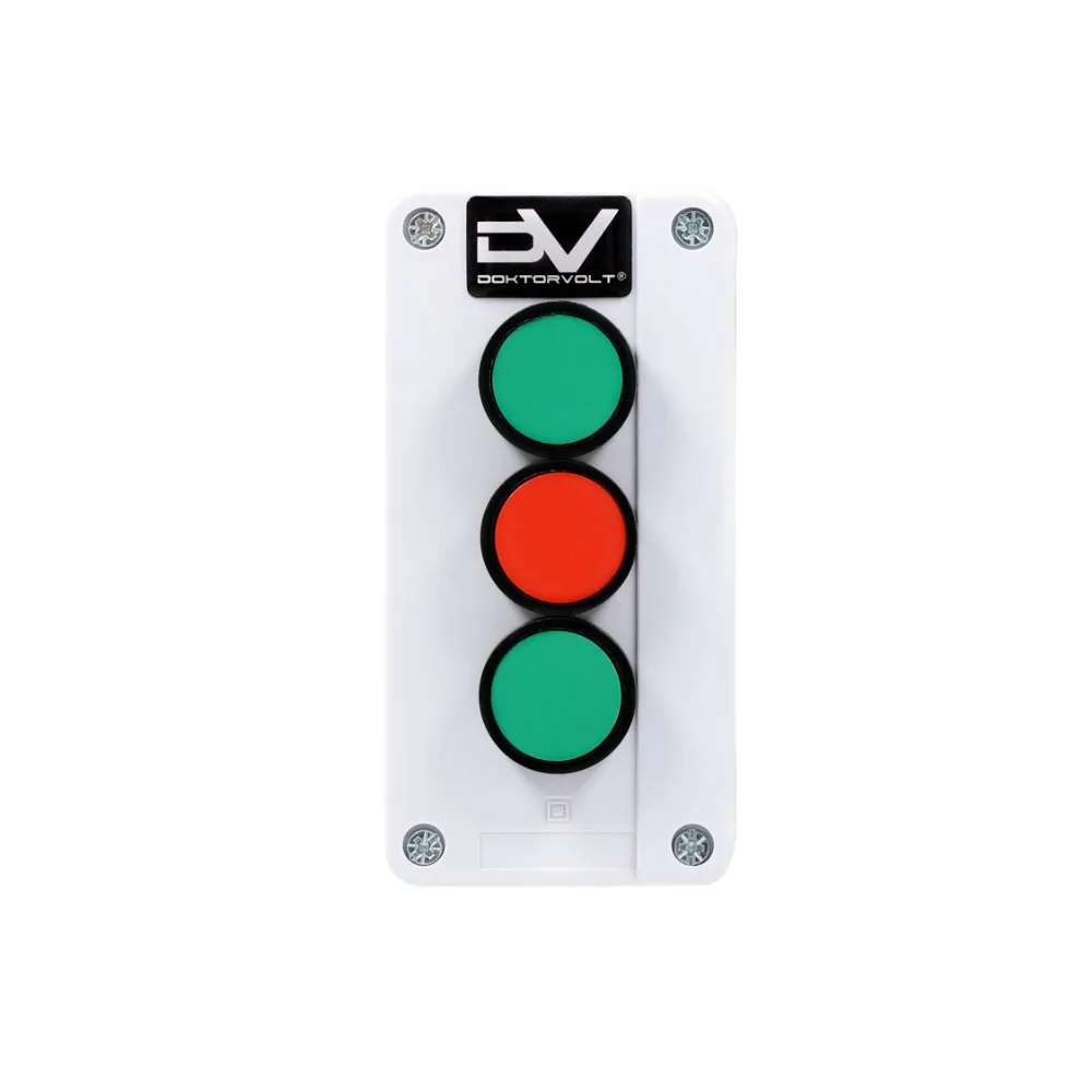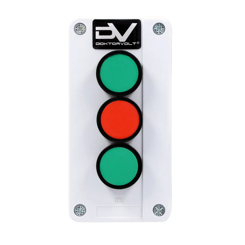 ➡️ Produkt wykonany z wysokiej jakości tworzywa sztucznego, dostępny w kolorze szaro-czarnym, wyposażony w 2 zielone przyciski (styk NO) oraz 1 czerwony przycisk (NC).