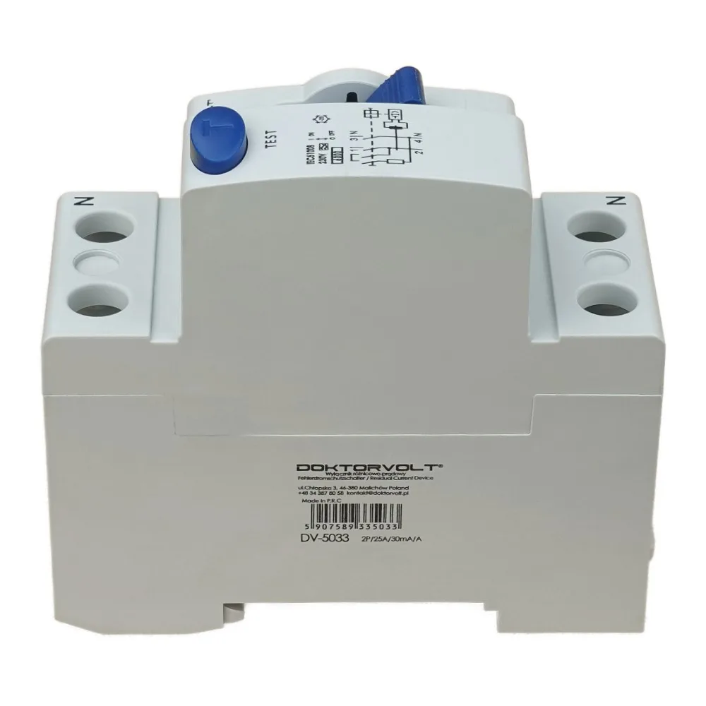 Cechy wyłącznika różnicowoprądowego 2P 25A 30mA typ A Doktorvolt DV-5033: