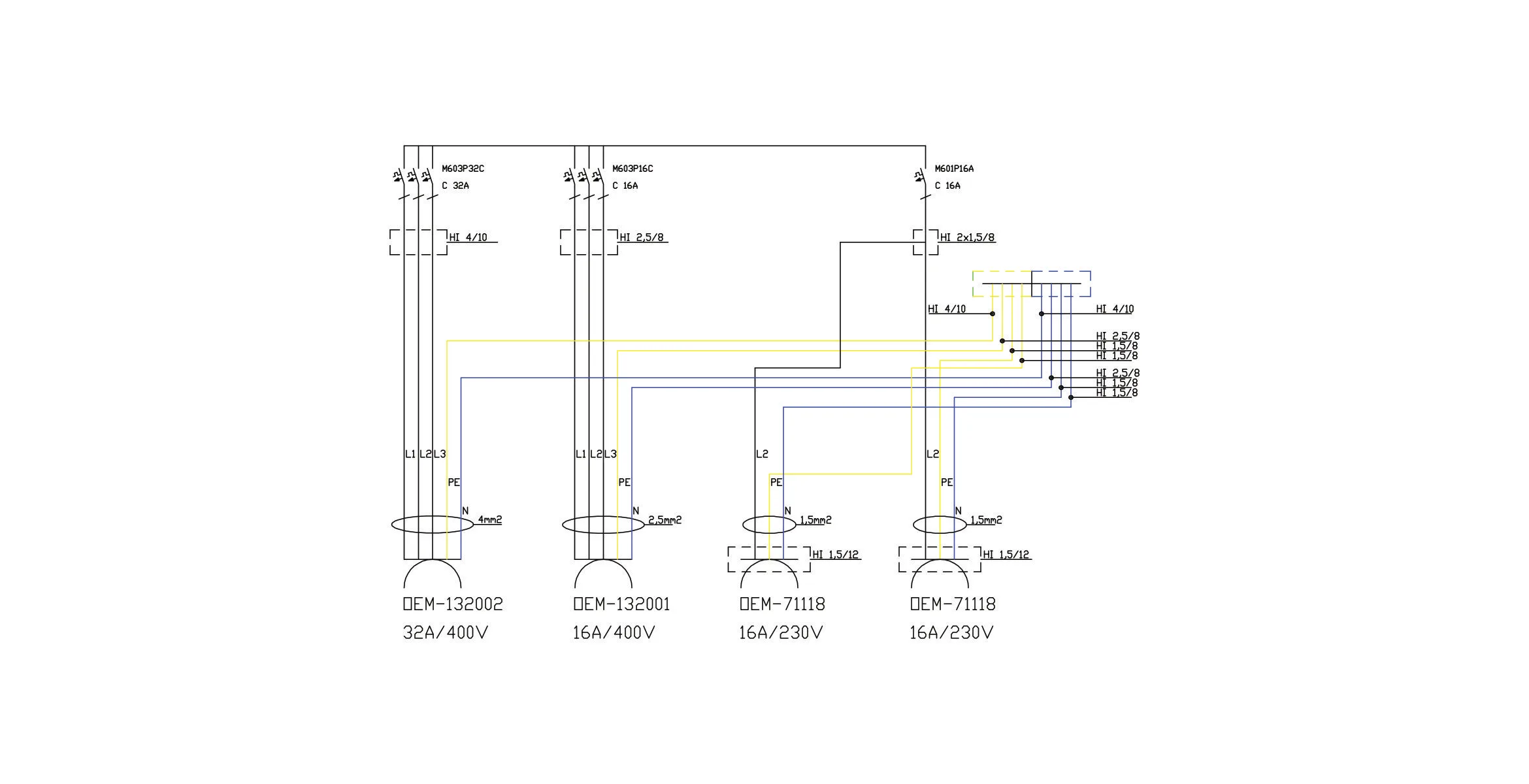 | gniazda siłowe | 1 x 32A/5P 400V IP44 Quick-Connect Bals Symbol 132002 1 x 16A/5P 400V IP44 Quick-Connect Bals Symbol 132001 zabezpieczone wyłącznikami nadprądowymi : 1 x C32A 3P 1 x C16A 3P |