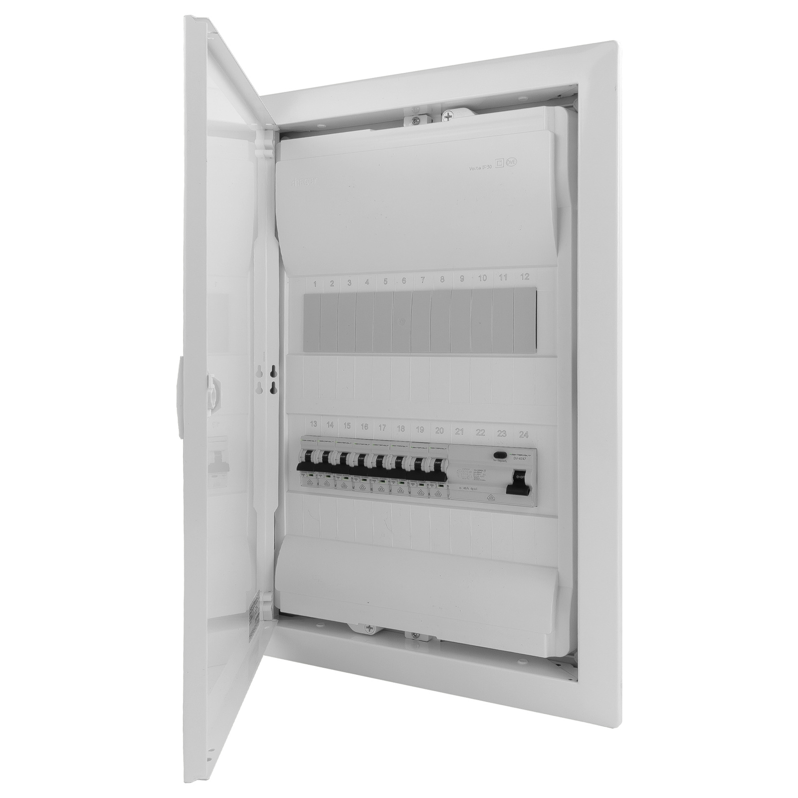 Rozdzielnica podtynkowa 505,50x348x98mm dwu rzędowa 24 modułowa z zabezpieczeniami 8xMCB 1xRCCB marki Doktorvolt
