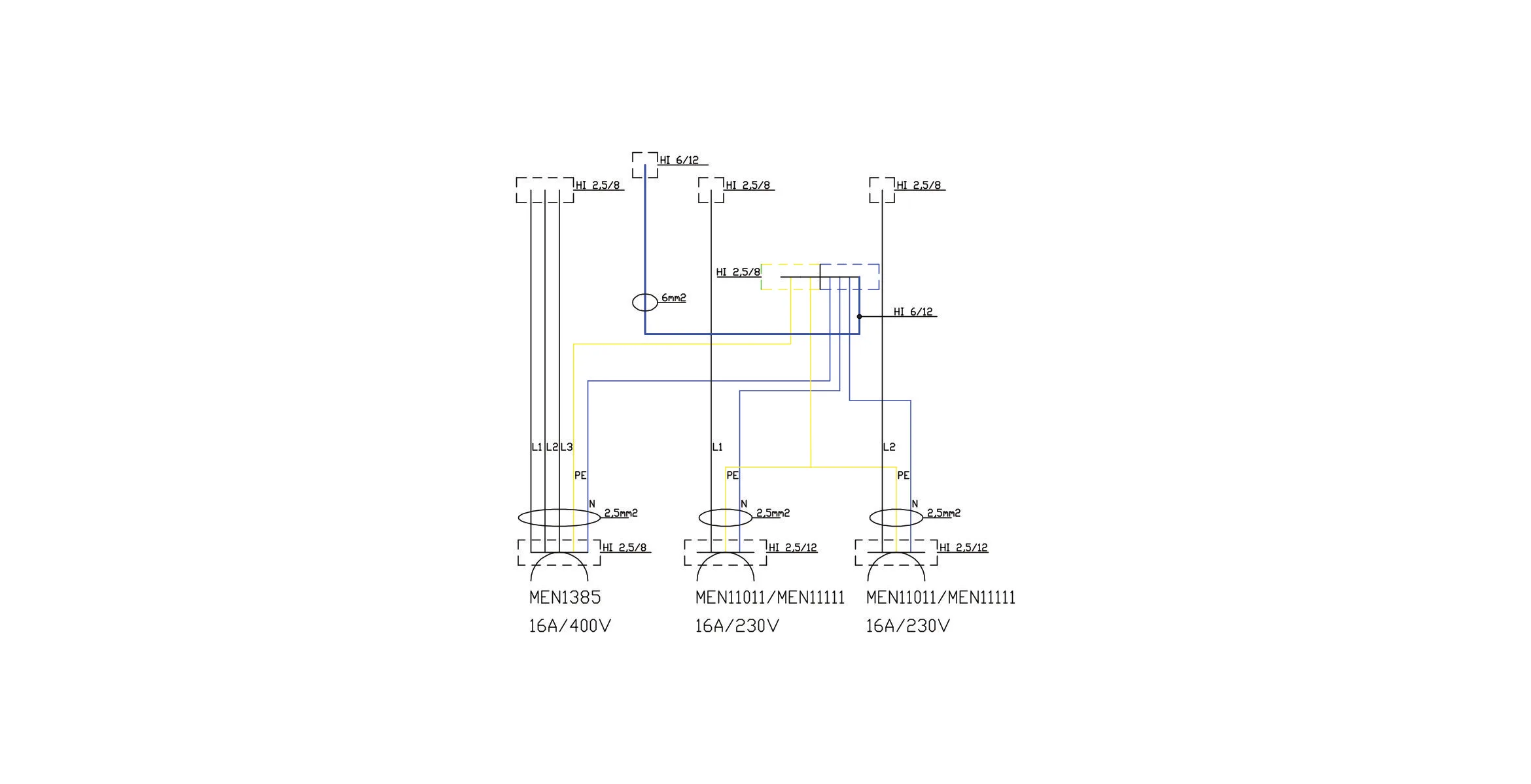 | gniazda siłowe | 1x 16A 5P 400V IP44 czerwone Typ 1385 Mennekes |