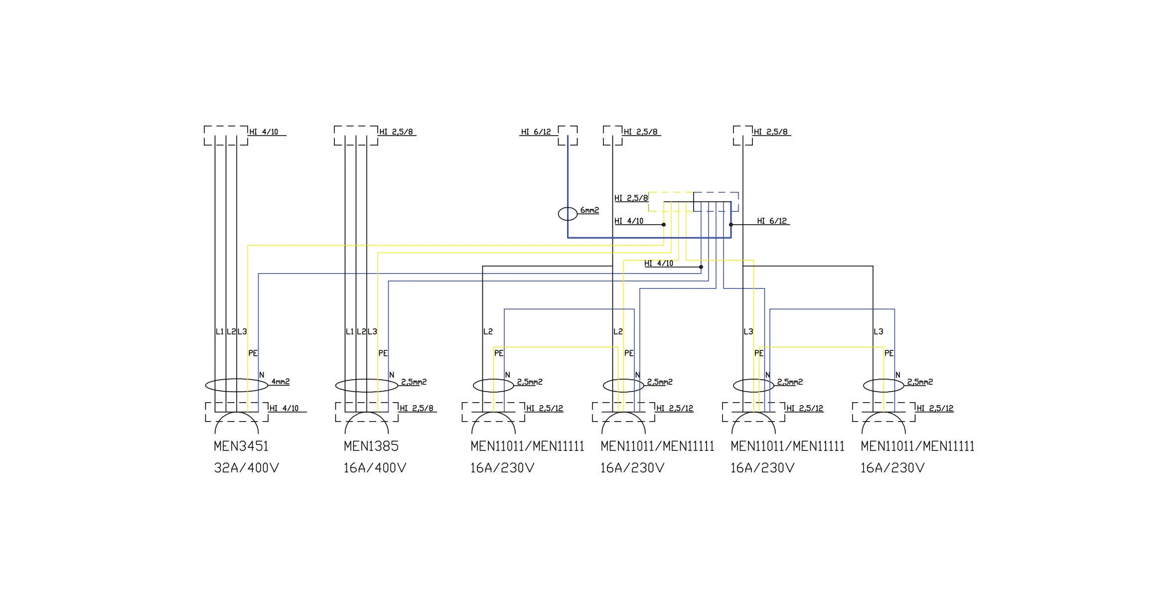 | liczba gniazd 230V 16A | 4x 230V 16A 2p+E IP54 niebieskie Schuko Typ 11011 system niemiecki Typ F Mennekes |