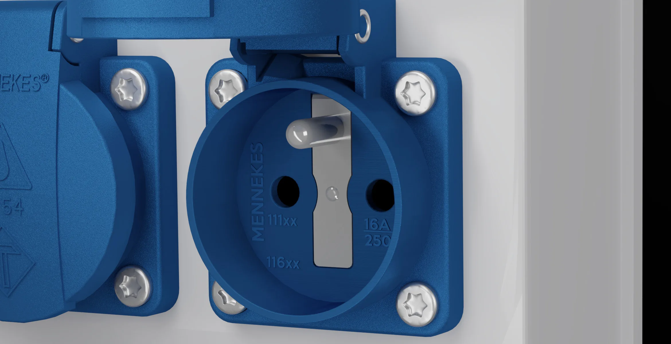 liczba gniazd 230V 16A6x 230V 16A 2p+E IP44 niebieskie Typ 11111 system francuski Typ E Mennekes