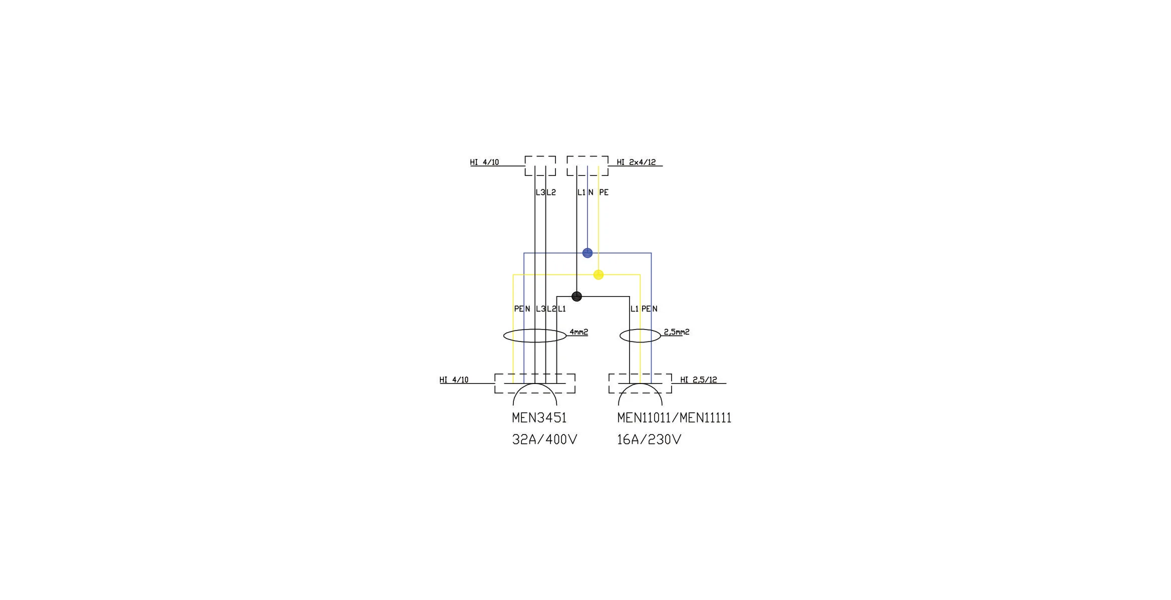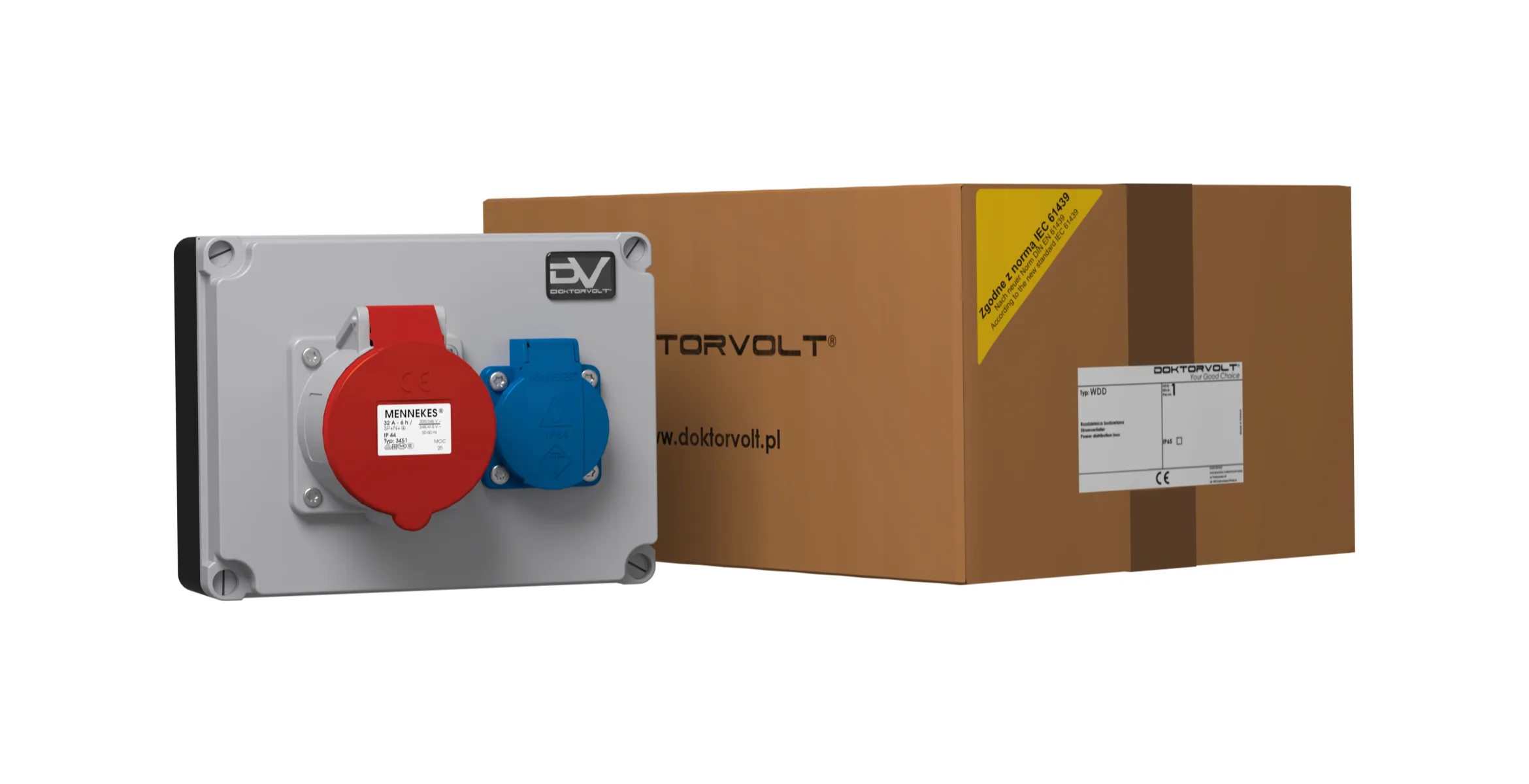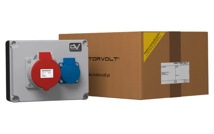 | ilość gniazd | 1 x 32A 5P 400V IP44 czerwone Typ 3451 Mennekes 1 x 230V 16A 230V 2p+E IP44 niebieskie SchukoTyp 11011 system niemiecki Typ F Mennekes |