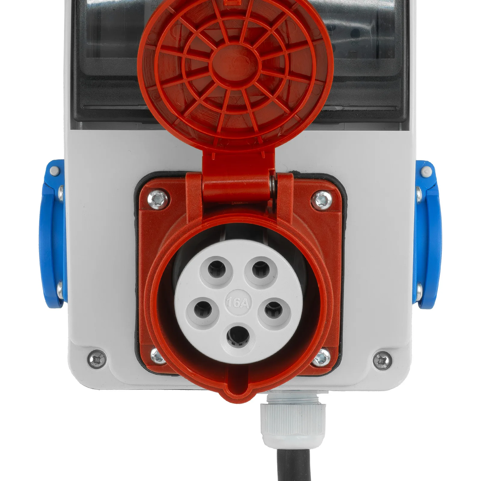 Wysokiej jakości rozdzielnica wyposażona w przewód 16A/5P CEE 400V. Erbetka posiada dwa gniazda 230V 16A Schuko i jedno gniazdo 16A CEE 400V. Dodatkowym elementem jest dołączony programator astronomiczny oraz stycznik modułowy. Dzięki swoim właściwościom rozdzielnica sprawdza się w wielu różnych warunkach atmosferycznych.