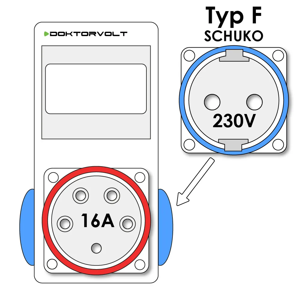 | Gniazdo 3-fazowe CEE | 1 x 3P + N + PE, 16 A, 400 V VDE |