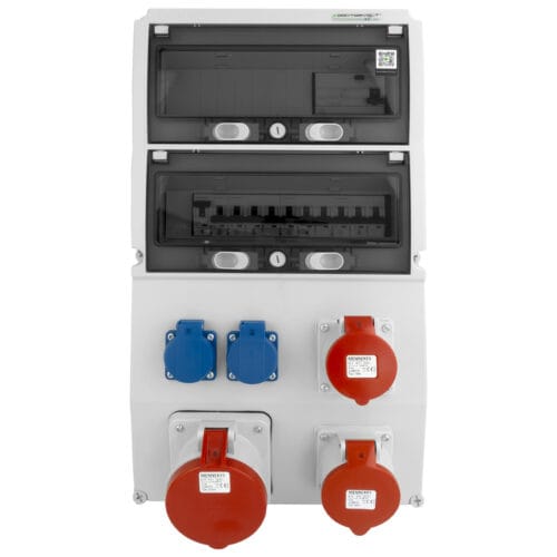 Rozdzielnica budowlana 63A 32A 16A CEE 2x230V eXT-S/FI Schuko z zabezpieczeniami gniazda Mennekes Doktorvolt DV-0847-D